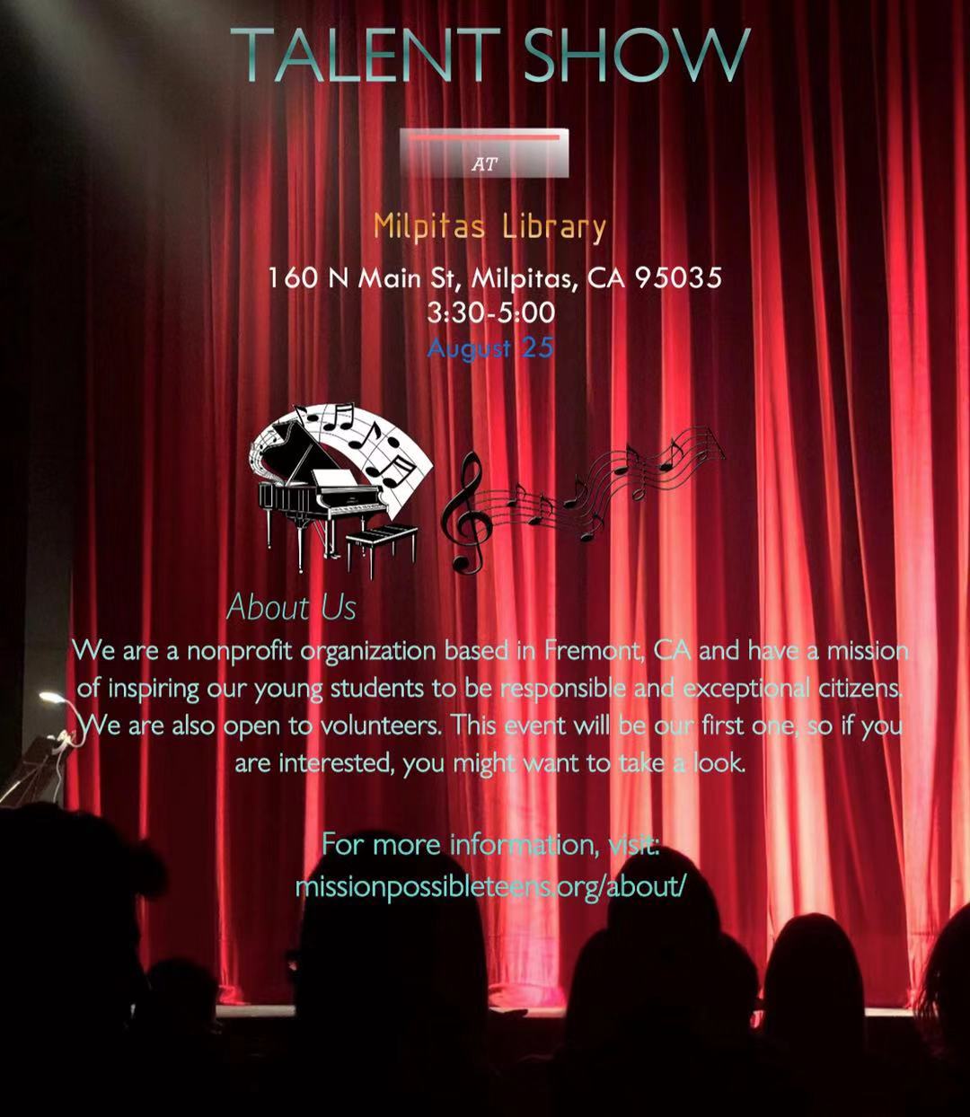 On August 8th, 2019 from 3:30 to 5 p.m. at the Milpitas Library’s Auditorium, we held our first Talent Show! We had instrumentalists, singers, martial artists, and more!
